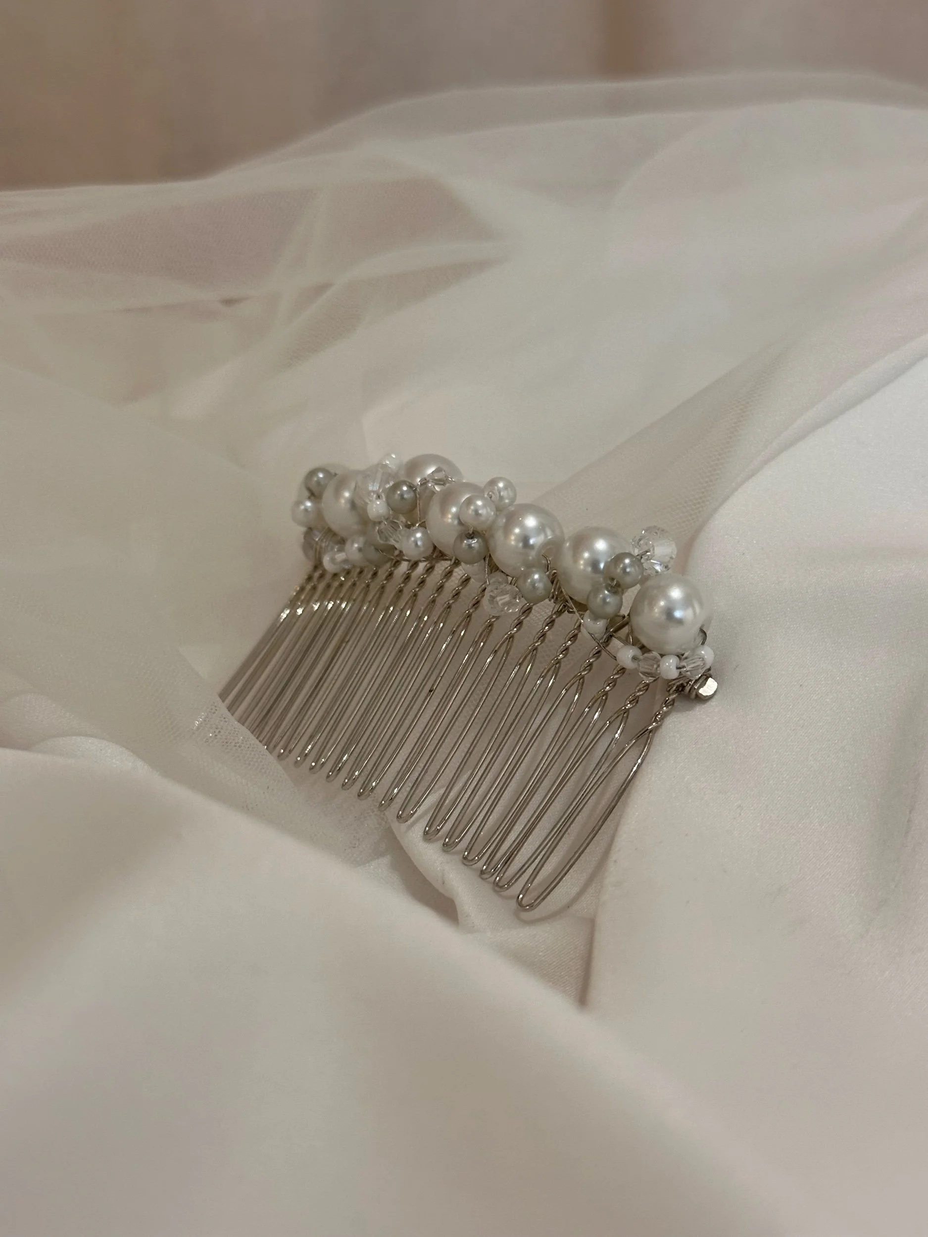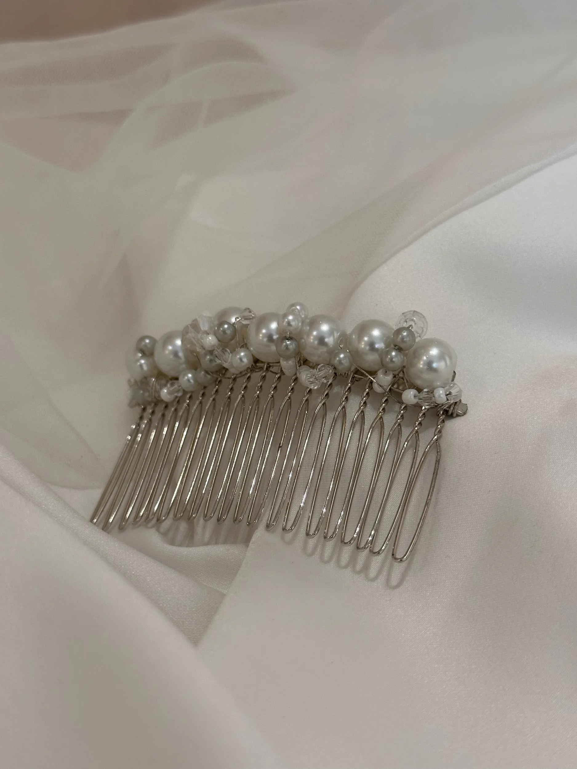 Jewellery › Treehouse Jewellery • Sweetpea hair comb Image 1 of 2 Image 2 of 2 Treehouse Jewellery • Sweetpea hair comb £35.00 Glass crystals and pearls wrap around this beautiful silver hair comb. Quantity: Purchase Added! Glass crystals and pearls wrap around this beautiful silver hair comb.