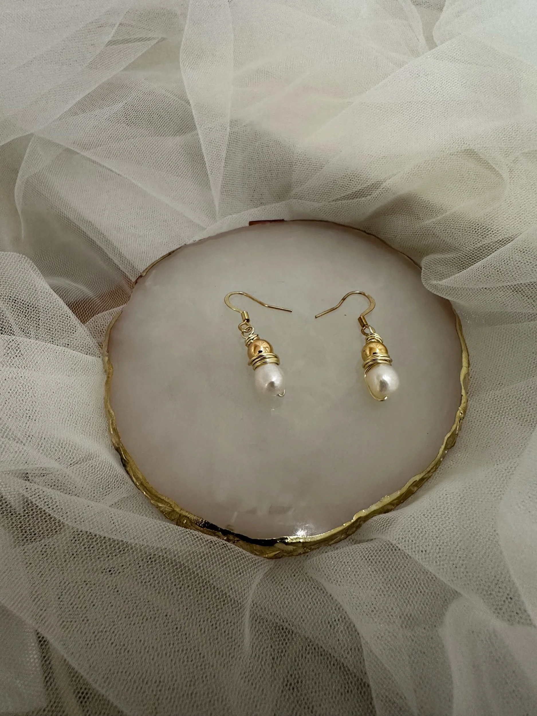 Jewellery › Treehouse Jewellery • Snowdrop earrings Image 1 of 1 Treehouse Jewellery • Snowdrop earrings £20.00 Freshwater pearl earrings with gold plated beads and hooks. Quantity: Purchase Added! Freshwater pearl earrings with gold plated beads and hooks.