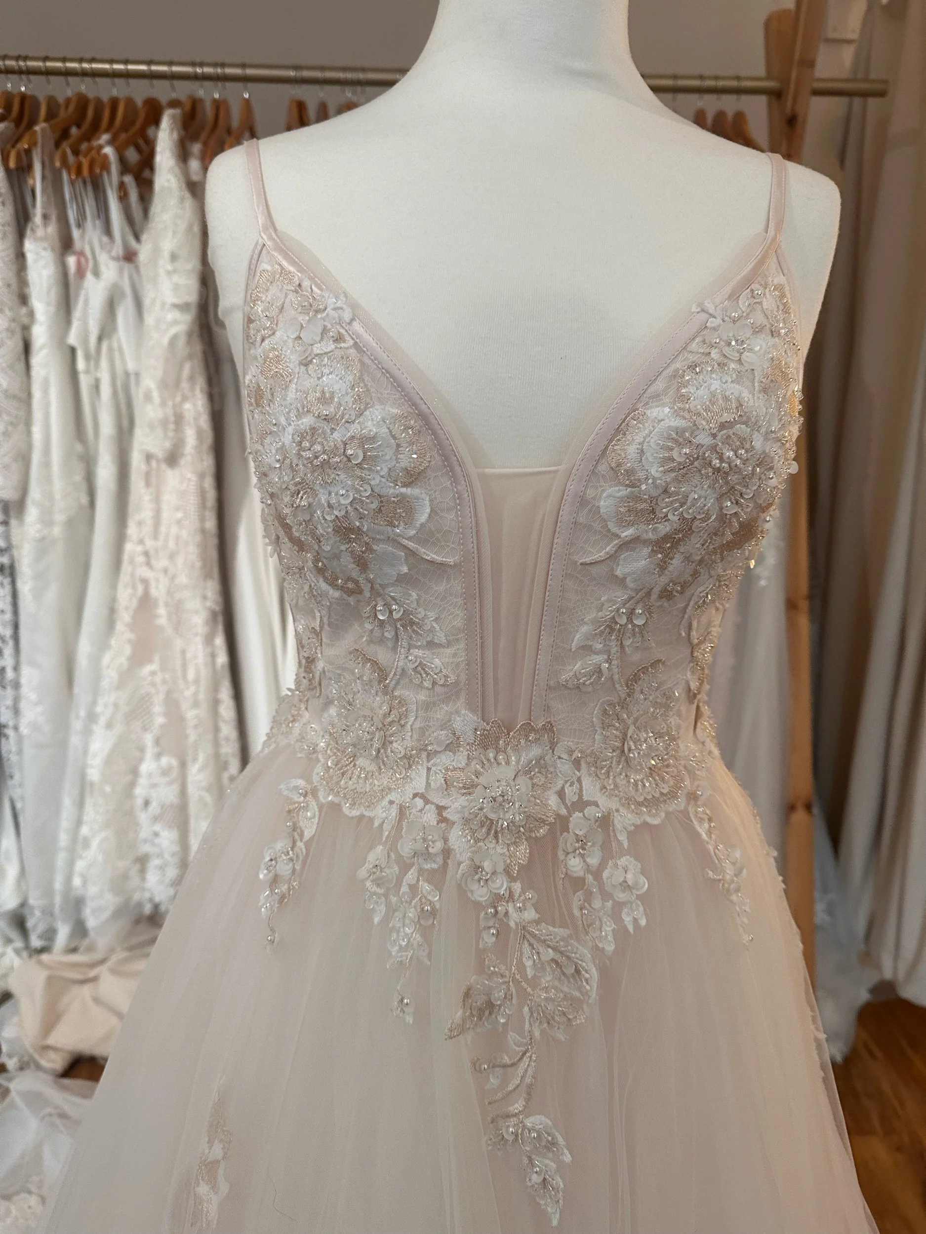 Image 1 of 3 Image 2 of 3 Image 3 of 3 Adella • Bespoke - Size 8 £800.00 A beautiful bespoke design, consisting of layers of bouncy tulle and a refined structured bodice. Size 8 Purchase Added! A beautiful bespoke design, consisting of layers of bouncy tulle and a refined structured bodice. Size 8