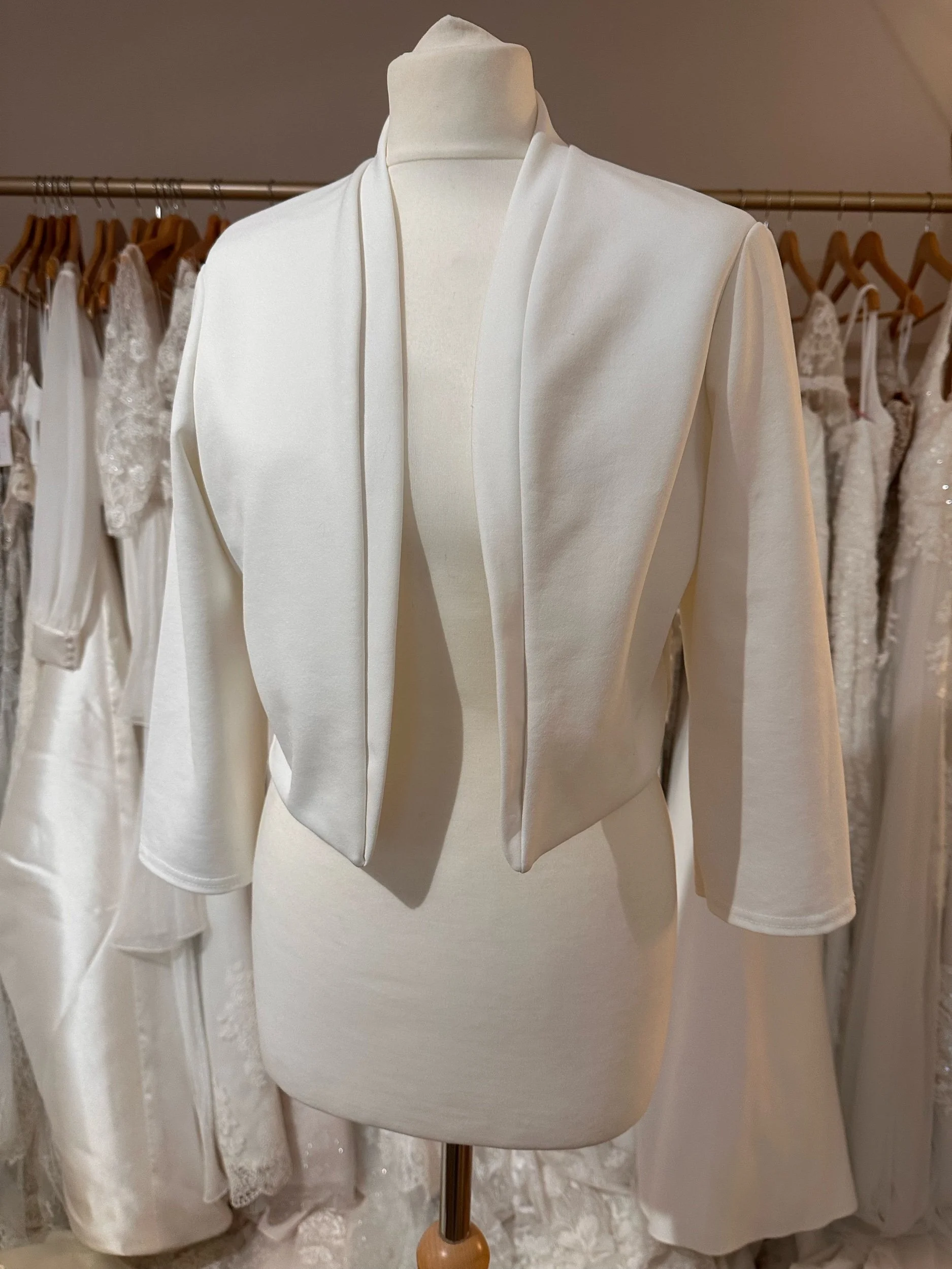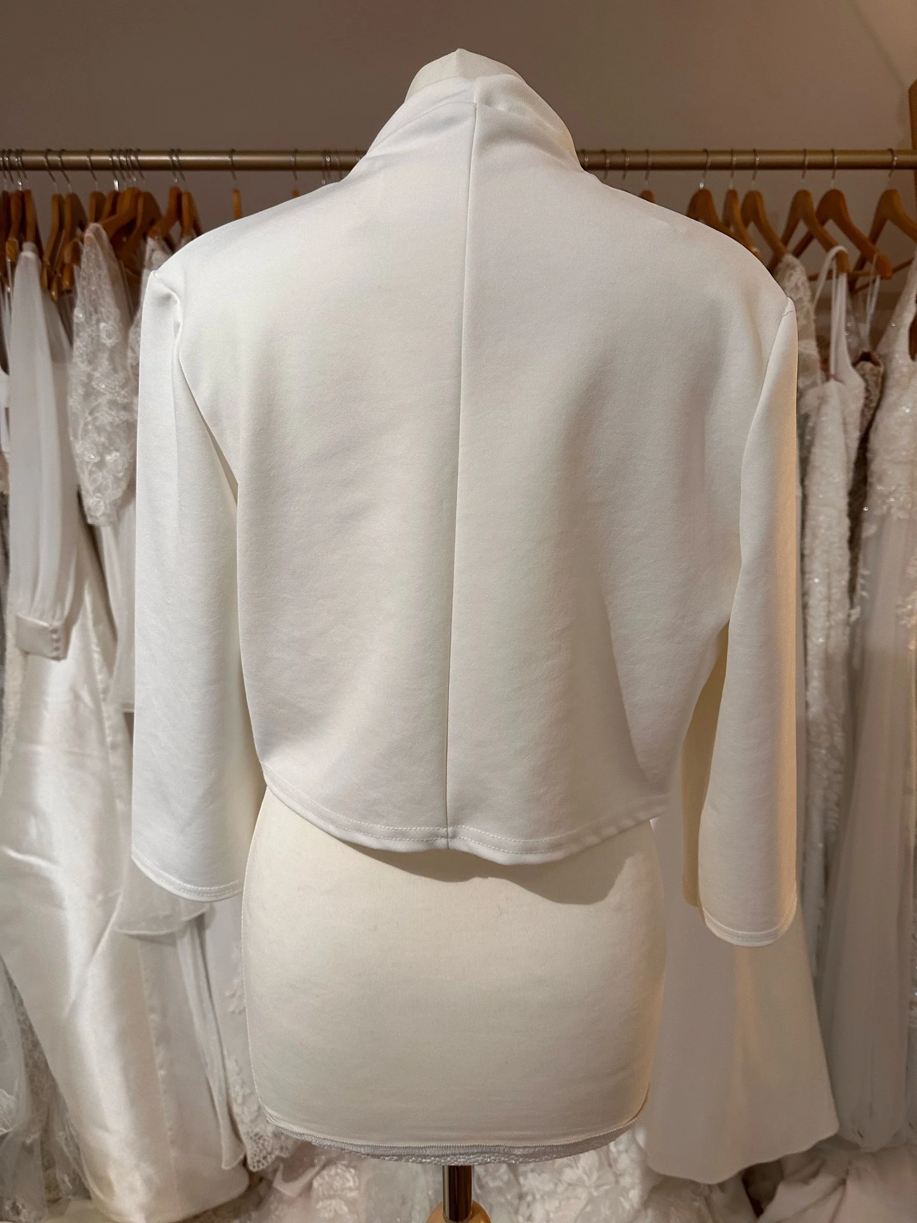 Perfect for a winter wedding, or someone wanting to add a little something over their dress. This ivory jacket is in perfect condition and could be used for bride or mother of the bride.